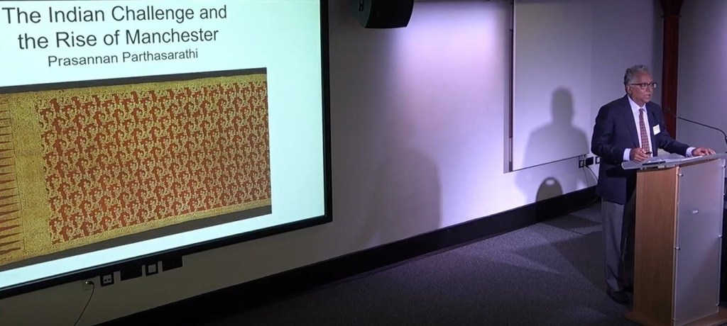 We enjoyed presentations from members of the Cottonopolis Collective, on their work to investigate the global environmental impacts and legacies of Manchester’s textiles industry, and Dr Josephine Tierney, who shared her research on the design and manufacture of British printed textiles for export to West Africa. The keynote lecture was delivered by Professor Prasannan Parthasarathi, who explored the centrality of high-quality Indian textiles to the development of Manchester’s cotton industry in the late 18th century.
