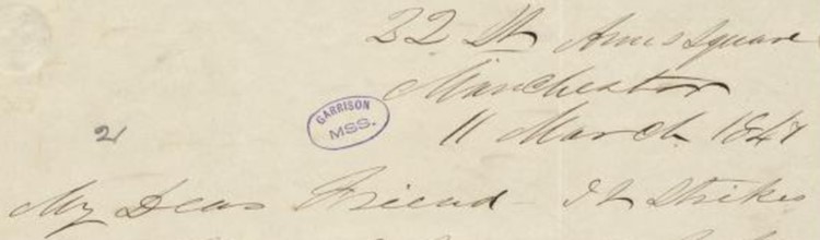 We know from letters dated from the 3rd and 22nd of December in 1846, that he stayed at 22 St. Ann’s Square during the month of December, where he also stayed in March 1847, if not on his other visits to the city. This accommodation is believed to have been organised by Alexander Morris, a linen draper and supporter of Douglass.