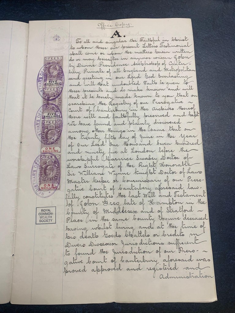 The Will of John Greg