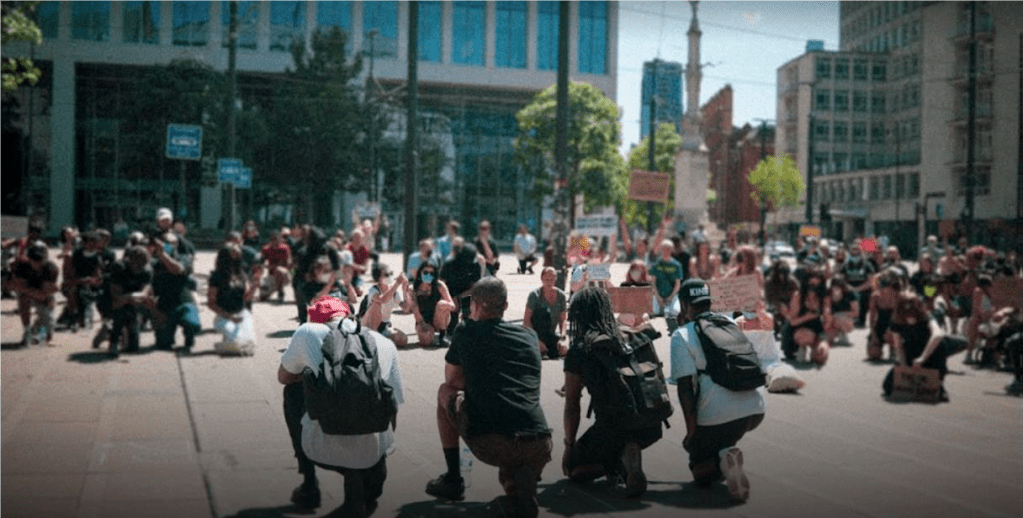 Some 200 years after Peterloo, on Thursday 31st May and Sunday 7th June 2020, thousands of protestors from a wide array of backgrounds gathered in the exact same space – St Peter’s Square – metres from the Portico Library, in demonstrations sparked by the murder by police of George Floyd in Minneapolis in the United States.